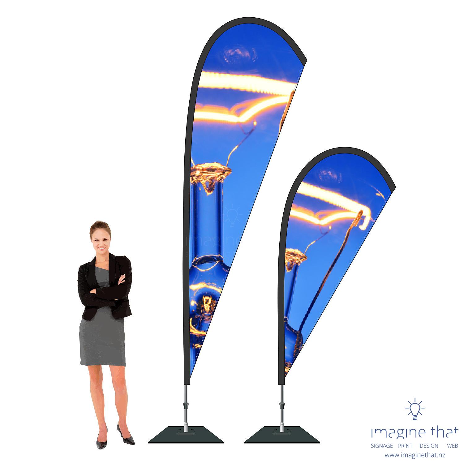 Teardrop flags have a distinctive shape and are always under tension, so the flags are easier to read and last longer.